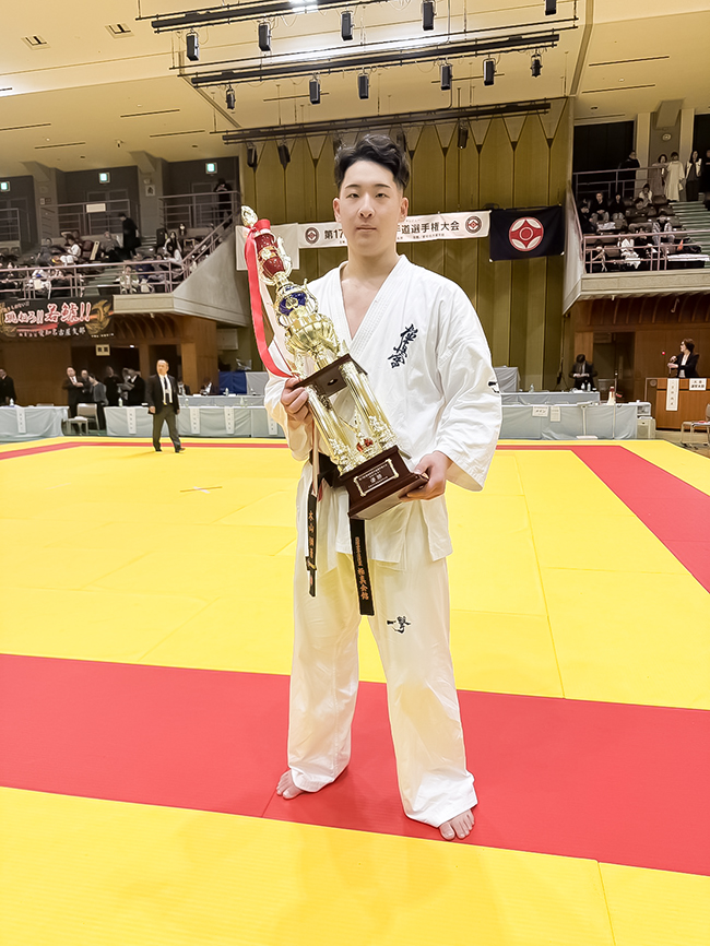 4月5日に愛知県武道館で開催された極真空手 第17回愛知県空手道選手権大会において、当社空手道部員の木山 獅勇選手が出場し、見事優勝を飾りました。皆さまのご声援、誠にありがとうございました。今後とも、木山選手および当社空手道部への温かい応援をよろしくお願いいたします。